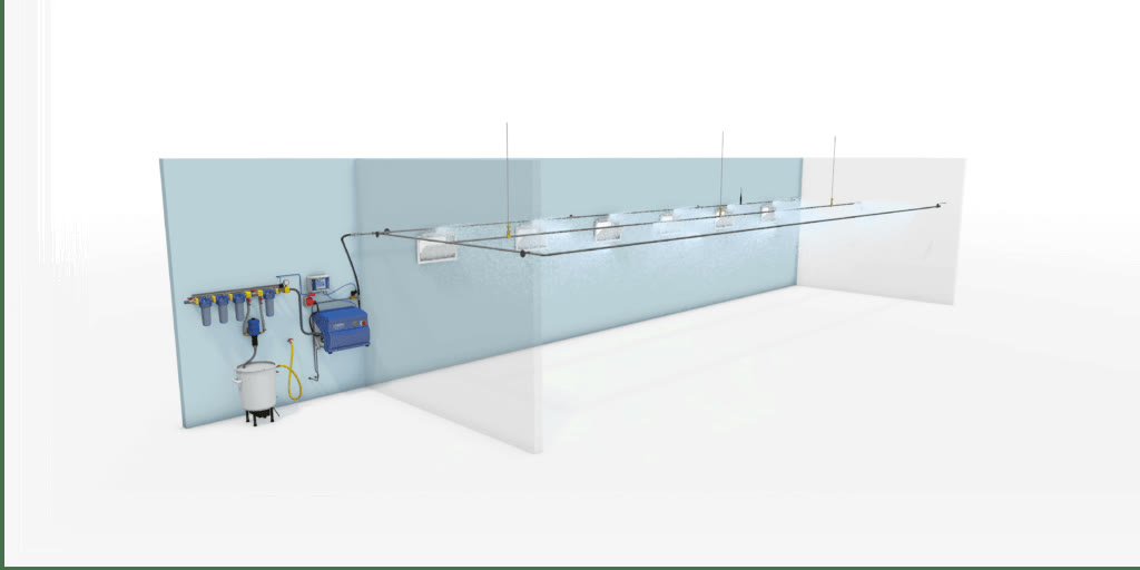 Система LUBING Top-Climate-System була розроблена для ефективного охолодження, зволоження та очищення повітря в приміщенні та має прямий позитивний вплив на добробут тварин. Він працює за принципом прямого випарного охолодження: завдяки унікально високому системному тиску 70 бар вода розпилюється особливо тонко. Випаровування immediate витягує теплову енергію з повітря в будинку та охолоджує навколишнє повітря. Окрім регулювання клімату в будинку та підвищення вологості повітря, Top-Climate-System може ефективно зв’язувати пил і частки в повітрі будинку.